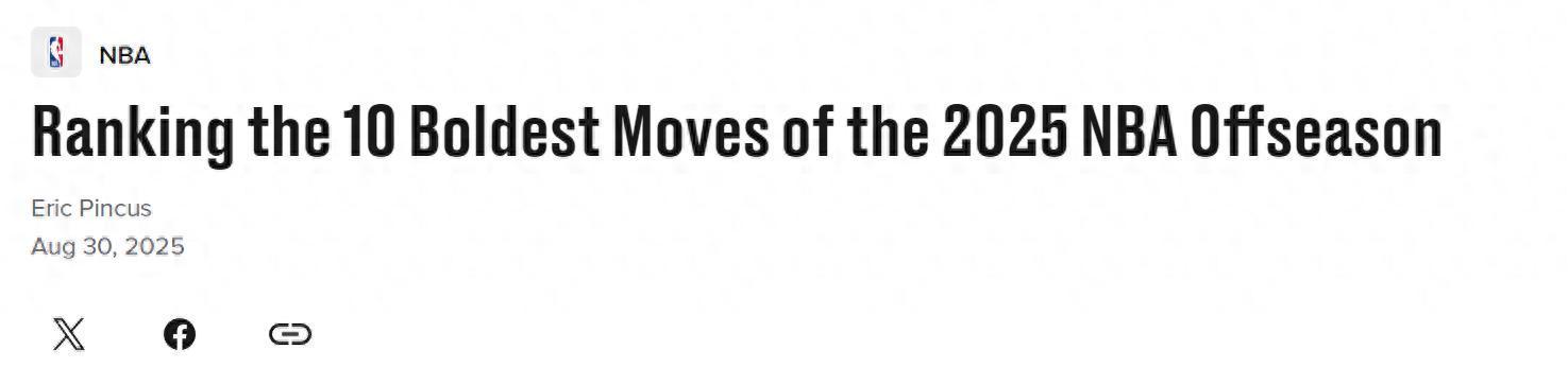 火箭队8换1KD高居第4!在休赛期大调整悉数完成之际,美媒《bleacherreport》公布休赛季大胆操作TOP10名单,其中湖人队拒绝续约老詹排第9。